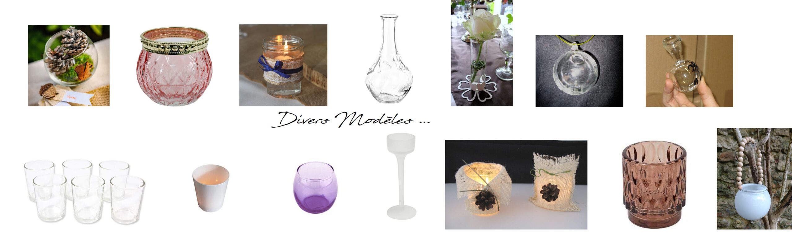 Divers modèles de photophores ou soliflores sont à votre disposition pour sublimer vos tables et buffets.